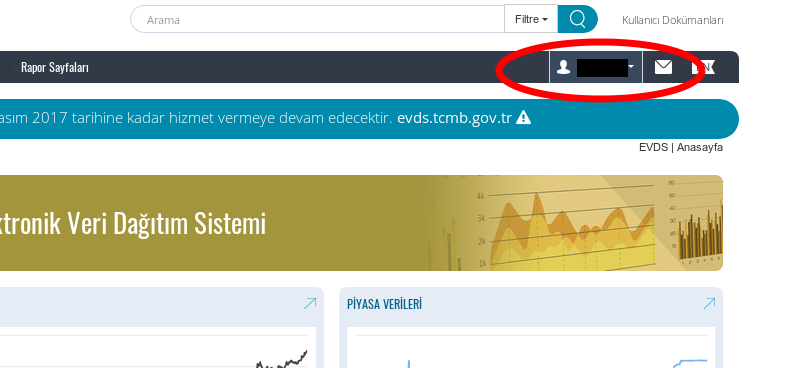 Hesabınıza girdikten sonra kullanıcı adınıza tıklayın, Burada bir menu açılacak orada "Profil"'e tıklayın veya bu adrese girin: https://evds2.tcmb.gov.tr/index.php?/evds/editProfile