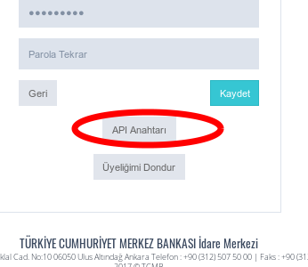 Profil sayfasında en alta doğru "API Anahtarı" tuşunu göreceksiniz, işte bu sizin anahtarınız