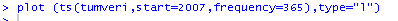 plot (ts(tumveri,start=2007,frequency=365),type="l")