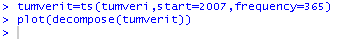 tumverit=ts(tumveri,start=2007,frequency=365) plot(decompose(tumverit)) |