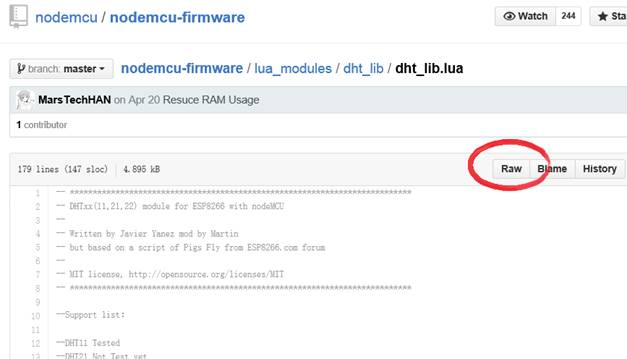 Click dht_lib.lua file and when the page opens, press “Raw” to get the raw version of the file .