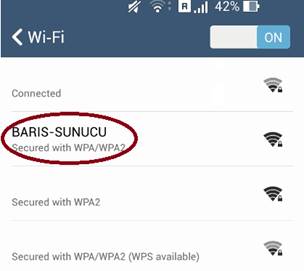 But when you open your mobile device and search for Wifi networks. Within the list you will see “BARIS-SUNUCU” or whatever name you used.