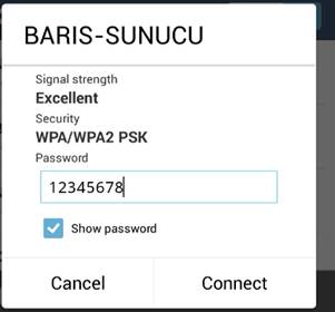 As you try to connect BARIS-SUNUCU, it will ask for password. We used 12345678 as the password in the program. So just typing it will do the trick and you will connect.