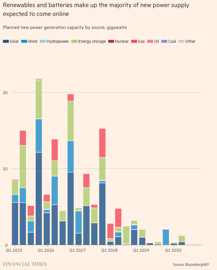 ABD’de de önümüzdeki yıllarda devreye girecek 100 GW’a yakın kapasitenin %90’ı yenilenebilir ve pil