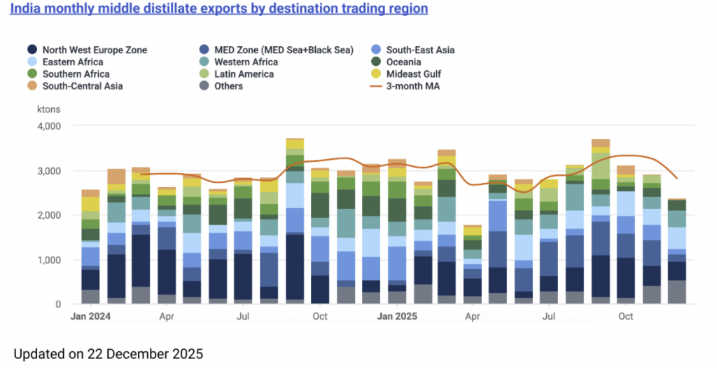 Hindistan talebi güçlü olunca, orta distilat ihracatı düşüşe geçti.